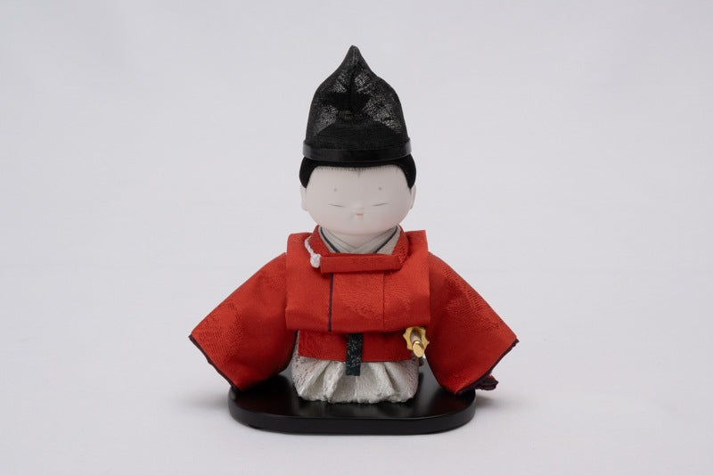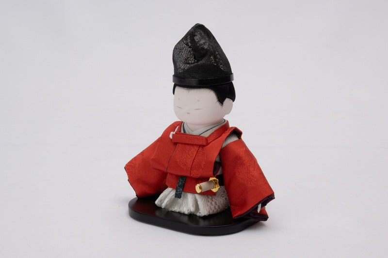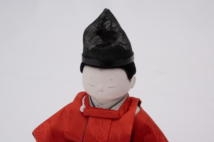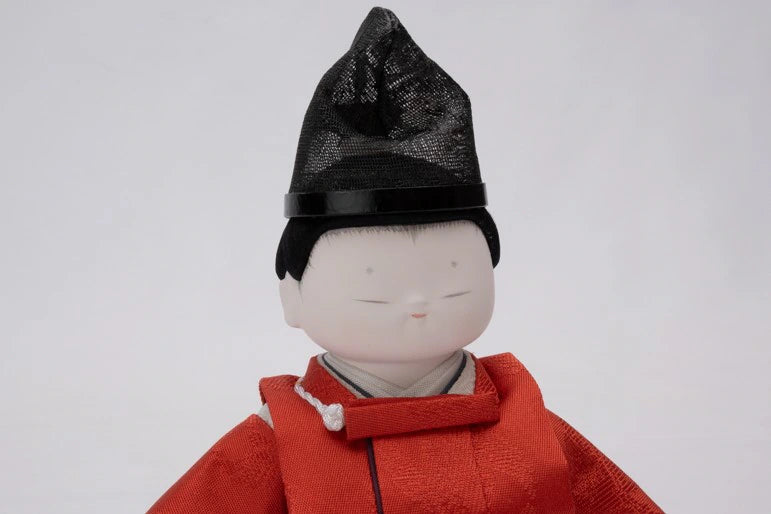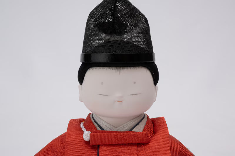 He wears Suikan, a Heian-period garment, along with a sha-eboshi headdress.