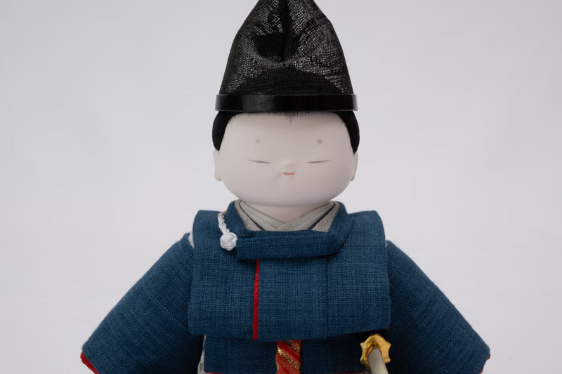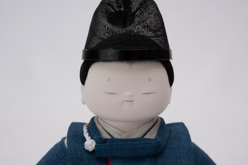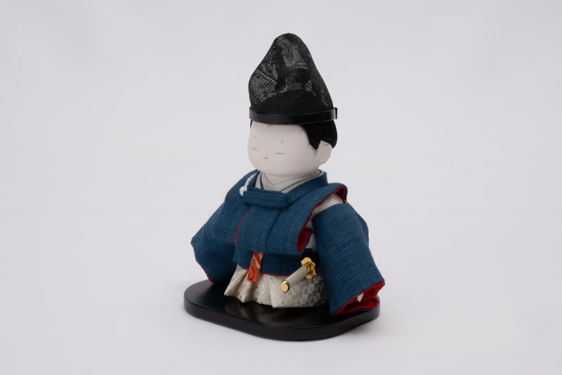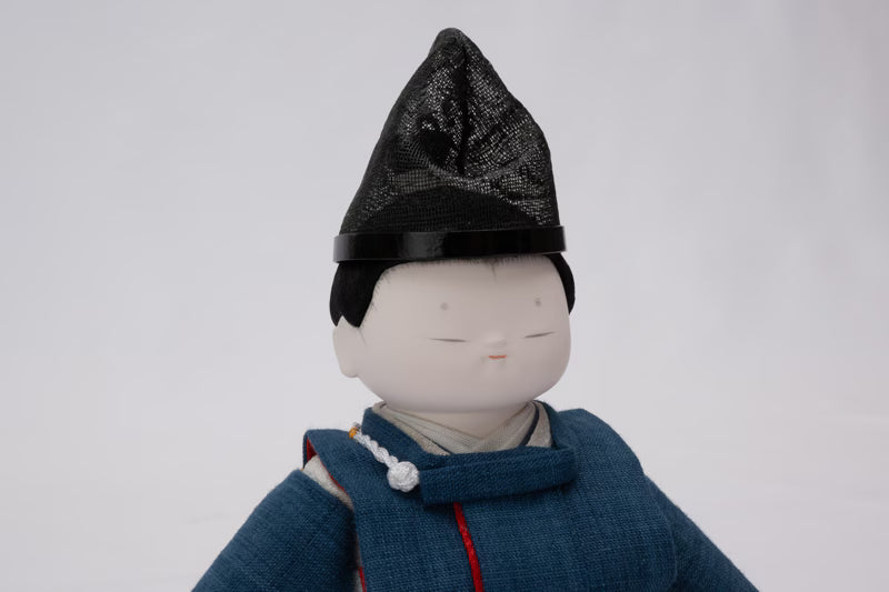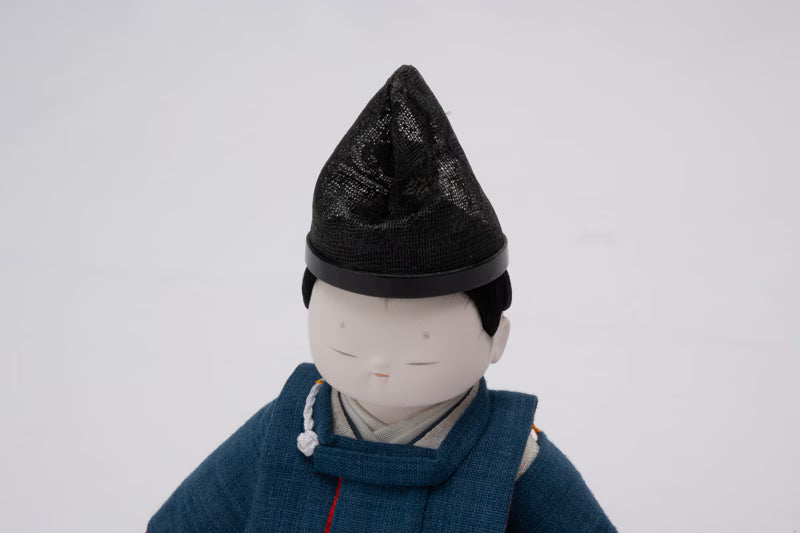 He wears Suikan, a Heian-period garment, along with a sha-eboshi headdress.